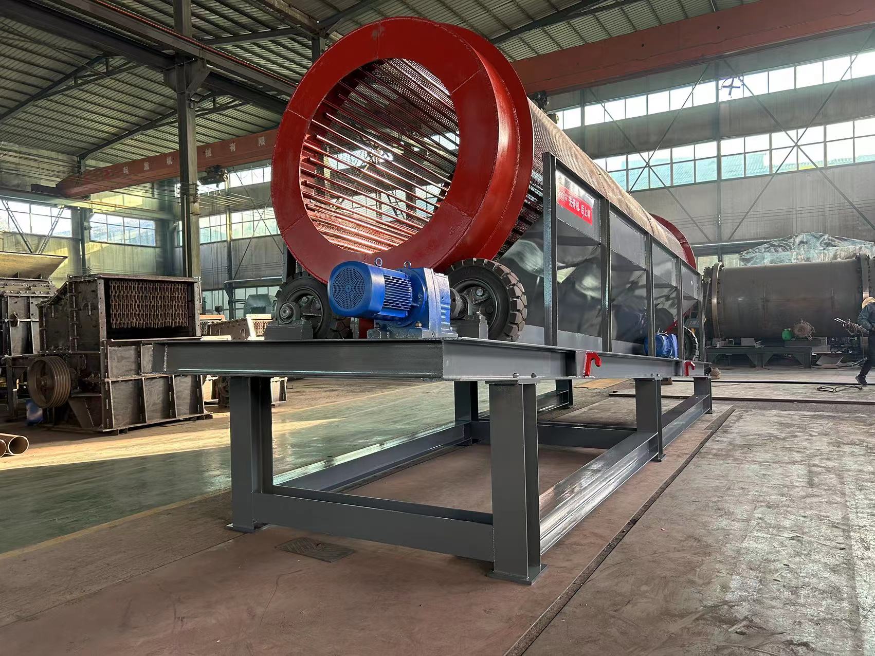 1、滾筒篩各部件安裝完,檢查合格后,可進行試運轉。試運轉前,應詳細檢查各部件按圖紙所示安裝正確,各緊固件牢靠,篩體周圍是否有妨礙滾筒篩運行的障礙物;